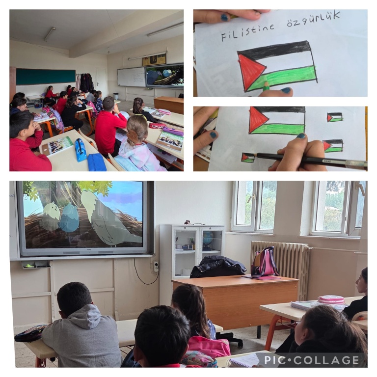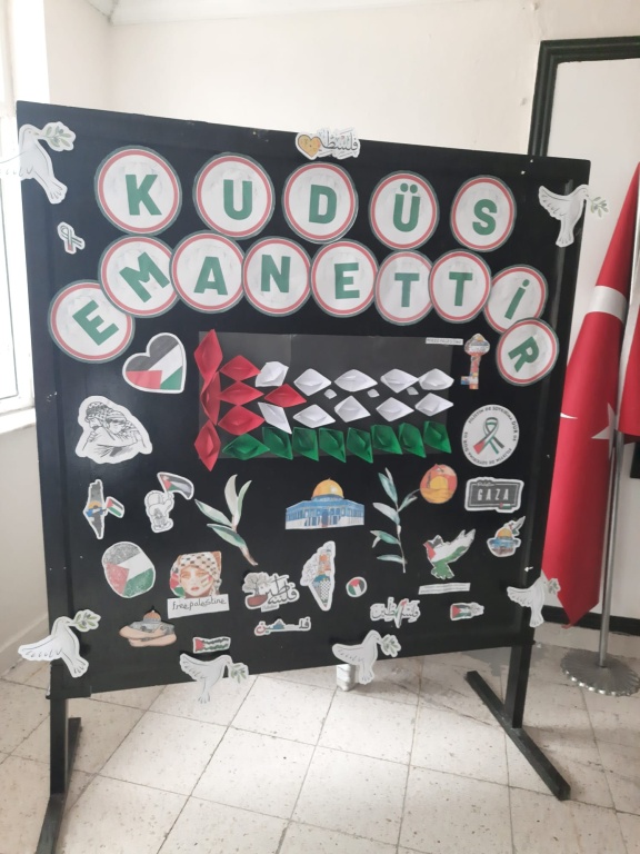 Filistin Farkındalık Etkinlikleri kapsamında zulmün yıldönümünde öğrenci ve öğretmenlerimiz konuya ne kadar duyarlı olduklarını hazırladıkları görsellerle ve yaptıkları etkinliklerle gösterdiler. Okulumuzda kısa film gösterileri yapıldı,panolar hazırlandı,anasınıfı öğrencileri boyamalar yaptı..